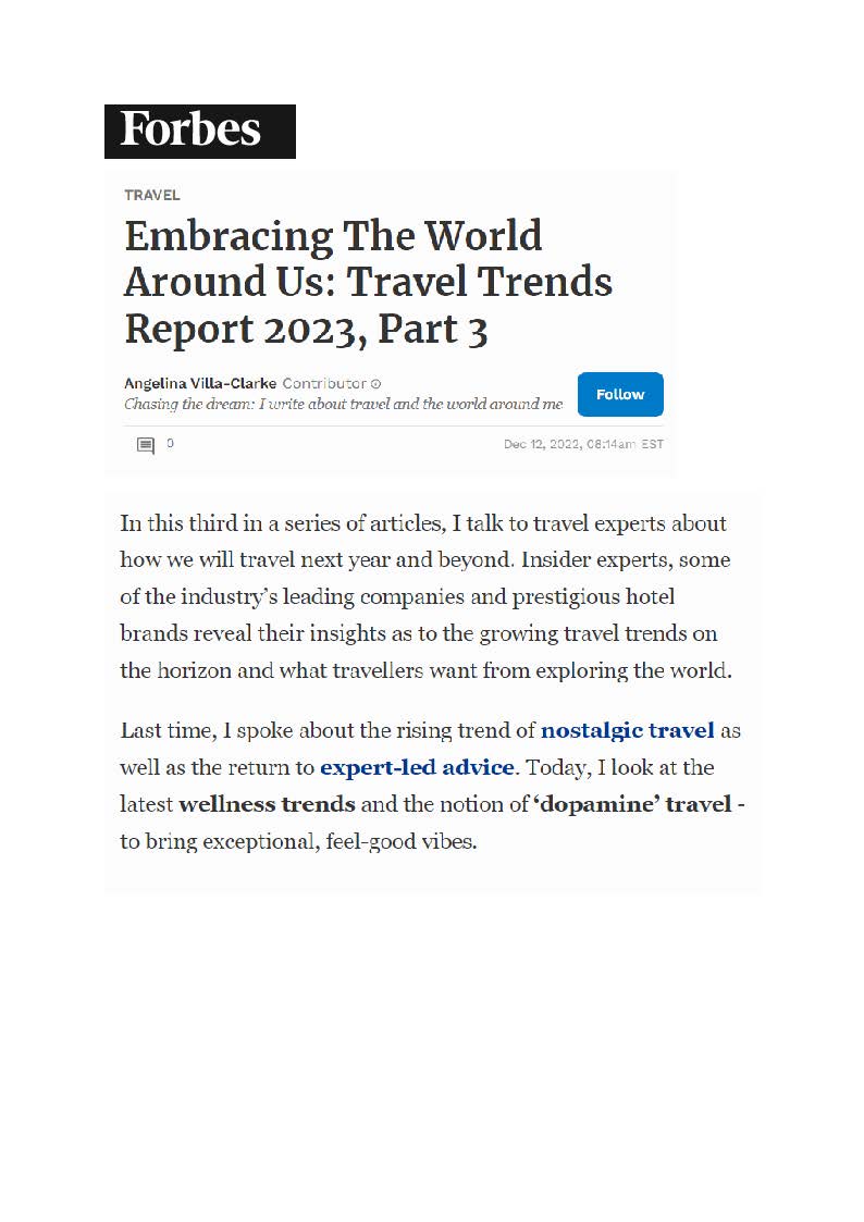 Last time, I spoke about the rising trend of nostalgic travel as well as the return to expert-led advice. Today, I look at the latest wellness trends and the notion of ‘dopamine’ travel to bring exceptional, feel-good vibes.